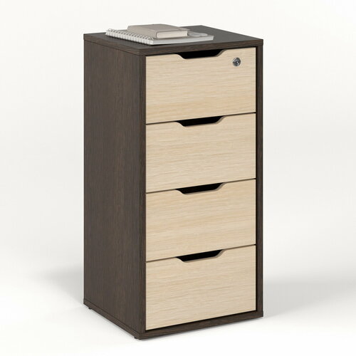 Тумба оснащена четырьмя ящиками, что обеспечивает удобное хранение различных предметов. Ящики оснащены роликовыми направляющими, что обеспечивает плавное и бесшумное открывание.