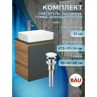 Купить Тумба Bau Dream Blackwood 50 графит, раковина BAU Hotel 48х37, смеситель для раковины высокий Hotel Still, нержавеющая сталь, выпуск клик клак, белый с доставкой по всей России.