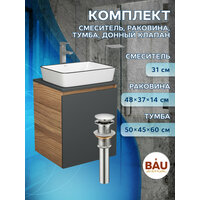 Тумба Bau Dream Blackwood 50 графит, раковина BAU Hotel Black Rand 48х37, смеситель для раковины высокий Hotel Still, нержавеющая сталь, выпуск клик клак, хром