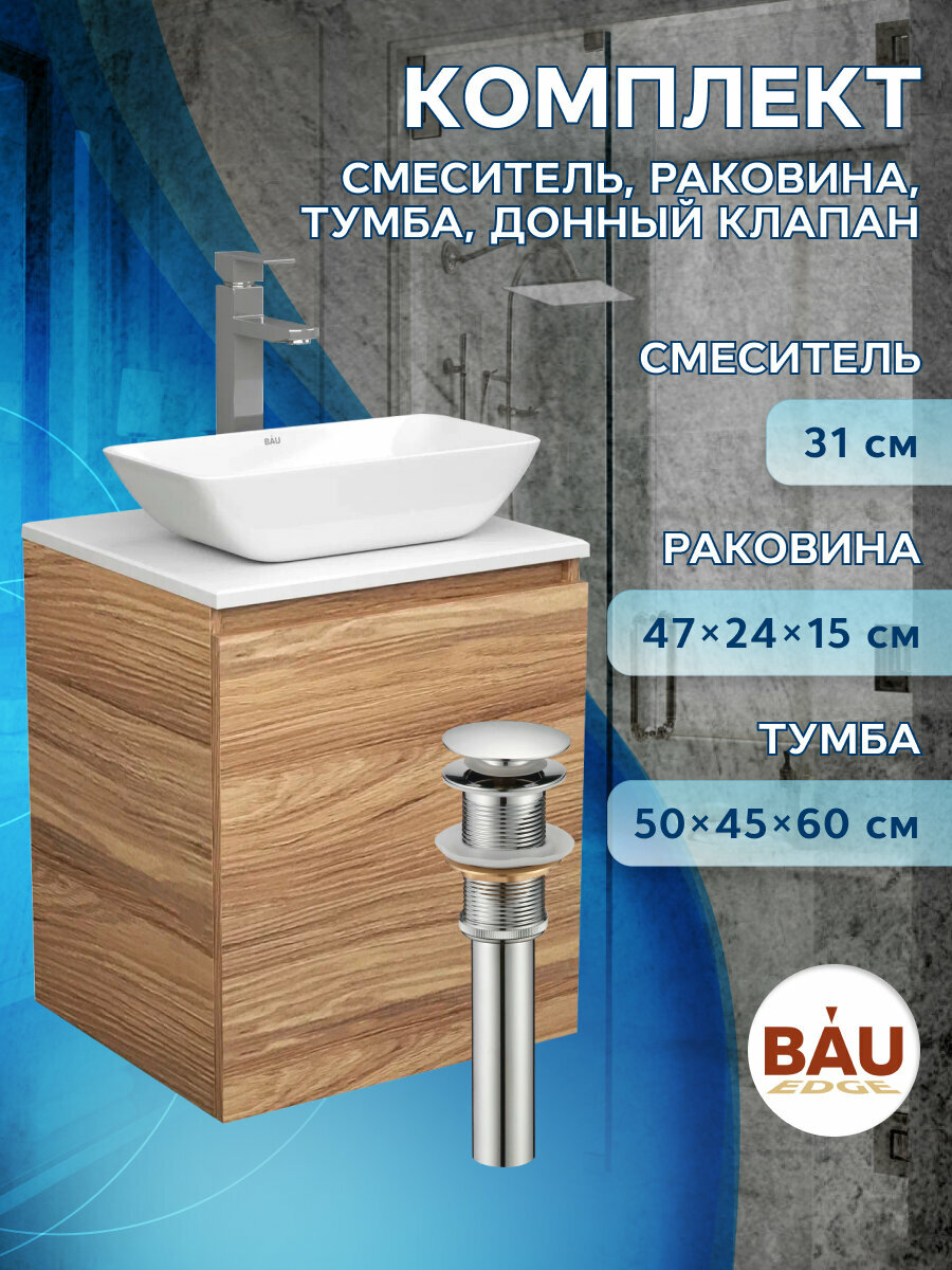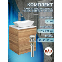Тумба Bau Dream Blackwood 50 с дверцей, раковина BAU Spectrum mini 47х24 смеситель для раковины высокий Hotel Still, нержавеющая сталь, выпуск клик клак, хром
