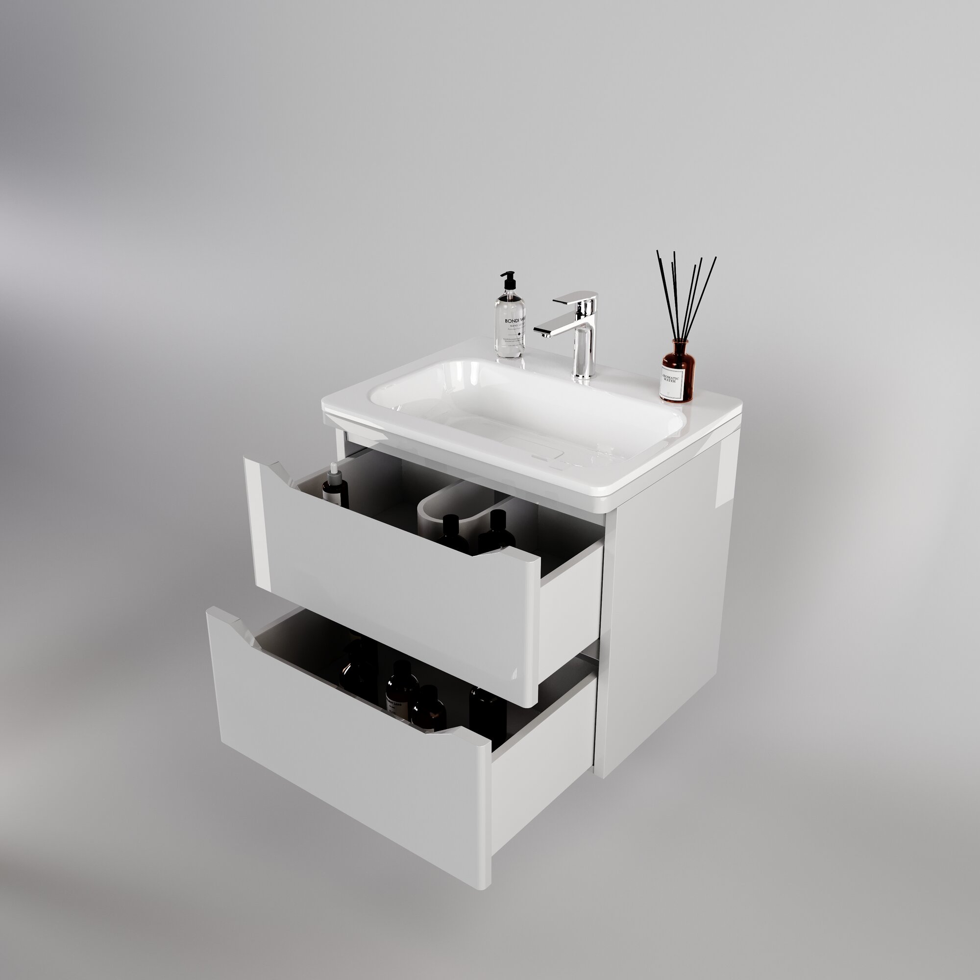Купить Style Line Тумба подвесная «Марелла 60» (2 ящ.) Люкс антискрейтч белый глянец, PLUS (Умывальник Марелла 60) с доставкой по всей России.