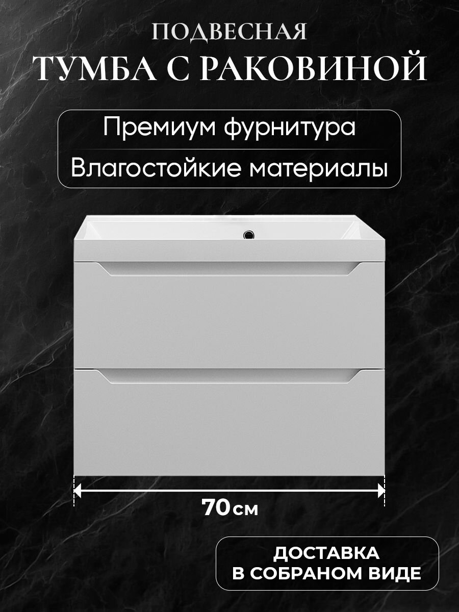 Купить Тумба с раковиной для ванной 70 подвесная аквакрафт Violetta Премиум, белая с доставкой по всей России.