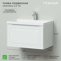Тумба c раковиной Итана Verona 2.0 70 699х448х440 Эмаль Белый матовый: сравнение цен, характеристики, фото, актуальное наличие и цены.