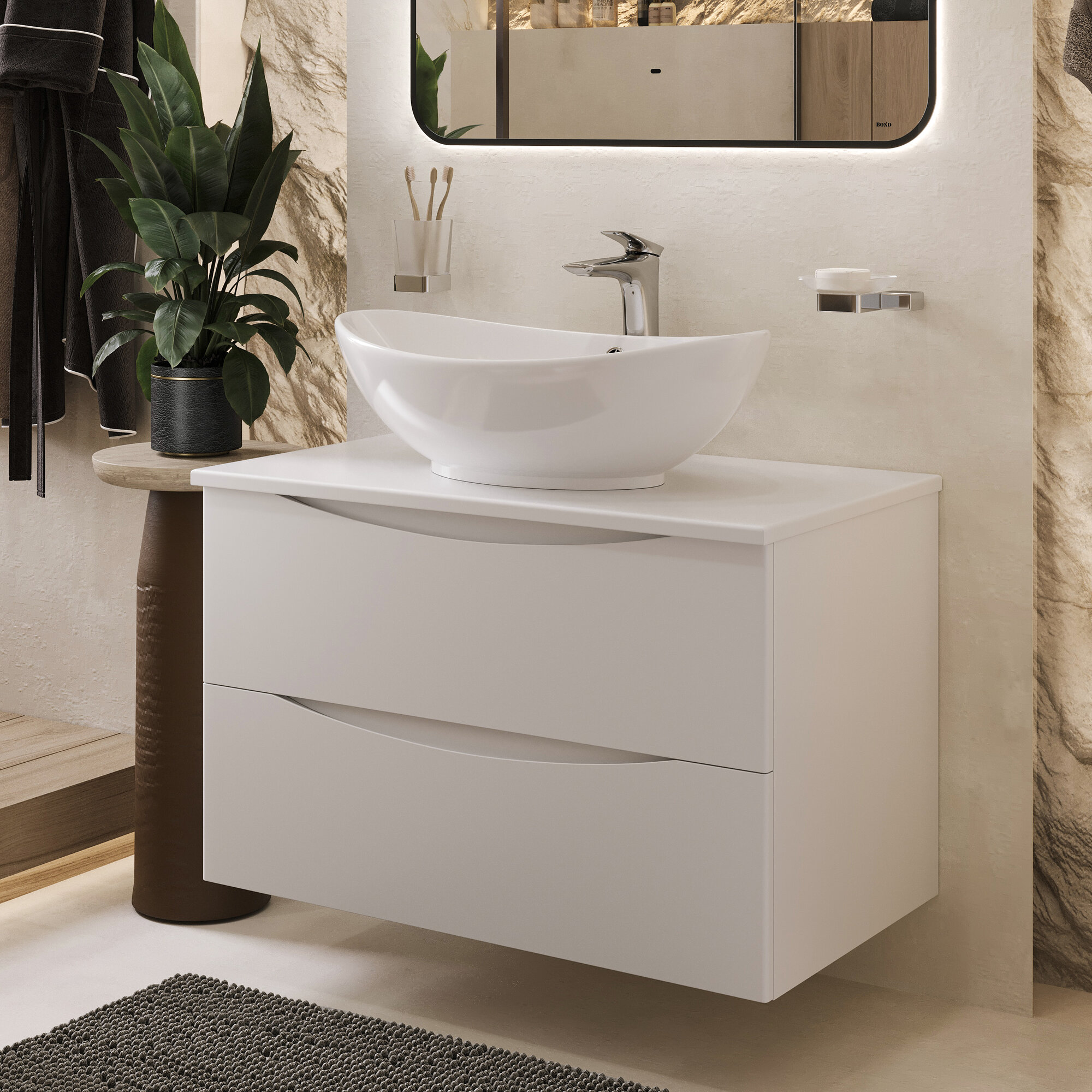Тумба c раковиной подвесная с белой столешницей BOND Cube T05805-S55590: сравнение цен, характеристики, фото, актуальное наличие и цены.