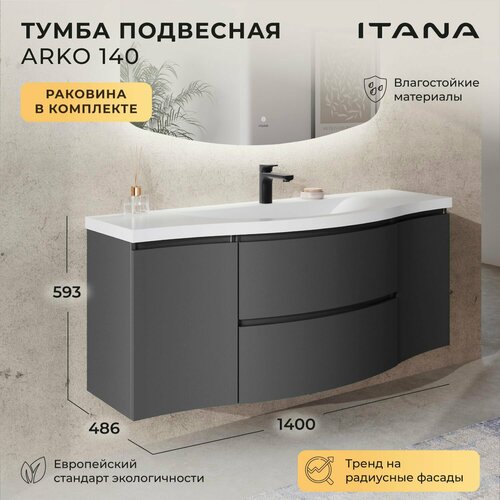 Купить Тумба c раковиной подвесная с радиусными фасадами Итана Arko 140 1400х486х593 Эмаль Графит с доставкой по всей России. Тумба c раковиной подвесная с радиусными фасадами Итана Arko 140 1400х486х593 Эмаль Графит: сравнение цен, характеристики, фото, актуальное наличие и цены.