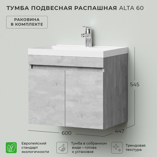 Купить Тумба c раковиной в ванную, тумба для ванной Итана Alta 60 600х447х545 подвесная распашная Бетонный Камень с доставкой по всей России. Тумба c раковиной в ванную, тумба для ванной Итана Alta 60 600х447х545 подвесная распашная Бетонный Камень: сравнение цен, характеристики, фото, актуальное наличие и цены.