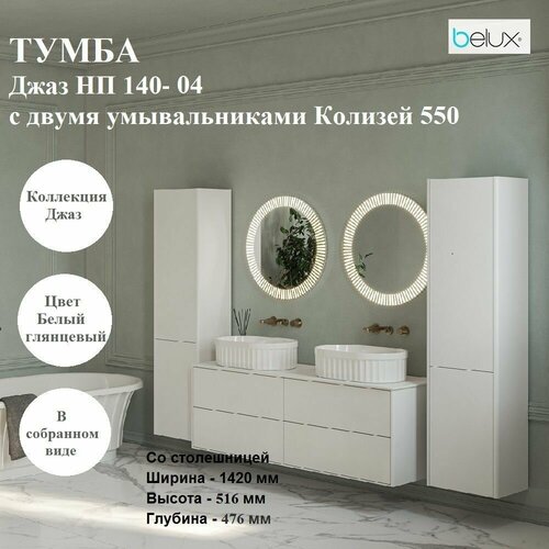 Купить Тумба c раковиной подвесная Belux Джаз 140 см Белый глянцевый (1) ум. Колизей 550 с доставкой по всей России.
