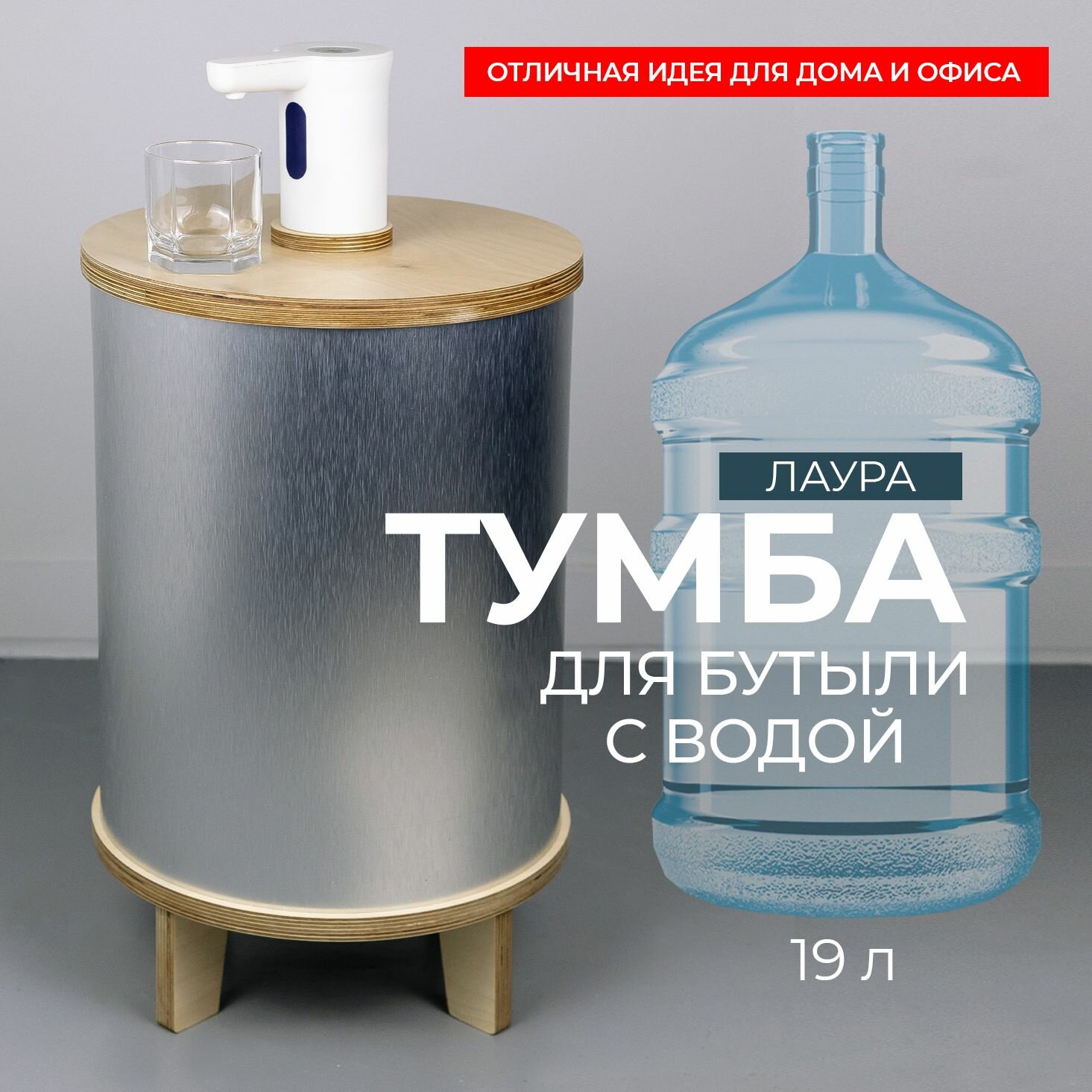Тумба чехол для бутыли 19 л - это функциональный футляр, изящно сочетающий в себе комфорт и стиль. Корпус дизайнерская тумбы выполнен из алюминия толщиной 3 мм, крышка и нижняя часть из влагостойкой фанеры. Тумбочка высокопрочная, долговечная и 100% защищена от влаги, что гарантирует ее длительное использование. Стеллаж под воду можно использовать во влажных помещениях, на улице, в загородном доме и не бояться перепадов температуры или воздействия влаги. Ухаживать за этажеркой легко — просто помойте ее под душем. Чехол надежно защищает воду от вредного воздействия и ультрафиолета, сохраняет ее свежесть и вкус. Тумба для кулера представляет собой дизайнерскую подставку, которая мастерски замаскирована под журнальный столик. Отличное решение спрятать бутыль от глаз и добавить изюминку в интерьер. Тумба кулер офисный имеет высокие ножки, позволяя с легкостью проводить уборку под ним. Изящная круглая полка заменит кулер для воды и будет красиво смотреться в разных стилях, будь то лофт, скандинавский или минимализм. Оригинальный и необычный ящик станет надежным партнером для вашей бутыли, придавая ей особый шарм. Благодаря своему классическому дизайну и натуральному цвету дерева, тумбочка станет незаменимым предметом декора. Тумбу для воды круглую можно поставить как на пол так и на полку. Разнообразие возможностей использования этого чехла для бутылки делает его незаменимым помощником как дома, так и на работе. Дизайнерская интерьерная деревянная тумба-чехол для воды - это отличное решение для тех, кто ценит комфорт, стиль и функциональность. Она поможет вам всегда иметь доступ к свежей и охлажденной воде, а также украсит ваш интерьер.