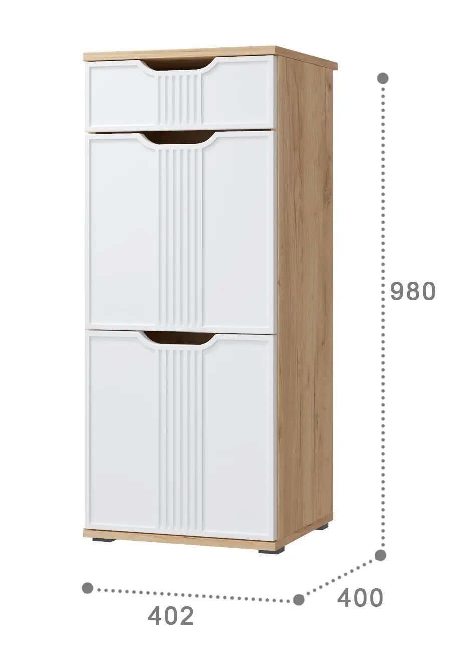 Тумба Эмилия ЭЛ-3 изготовлена из ЛДСП 16 мм, фасады МДФ. Тумба оснащена одним выдвижным ящиком, за дверьми расположены три полки для размещения обуви и других вещей. Сочетая тумбу с другими модулями из коллекции Эмилия, Вы можете создать стильную и лаконичную прихожую у себя дома. Свес крышки в 30 мм обеспечит прилегание к стене с любым плинтусом. Фурнитура: телескопические направляющие полного выдвижения, петли с доводчиками. Важная информация. Мебель доставляется в разобранном виде, в упаковках.