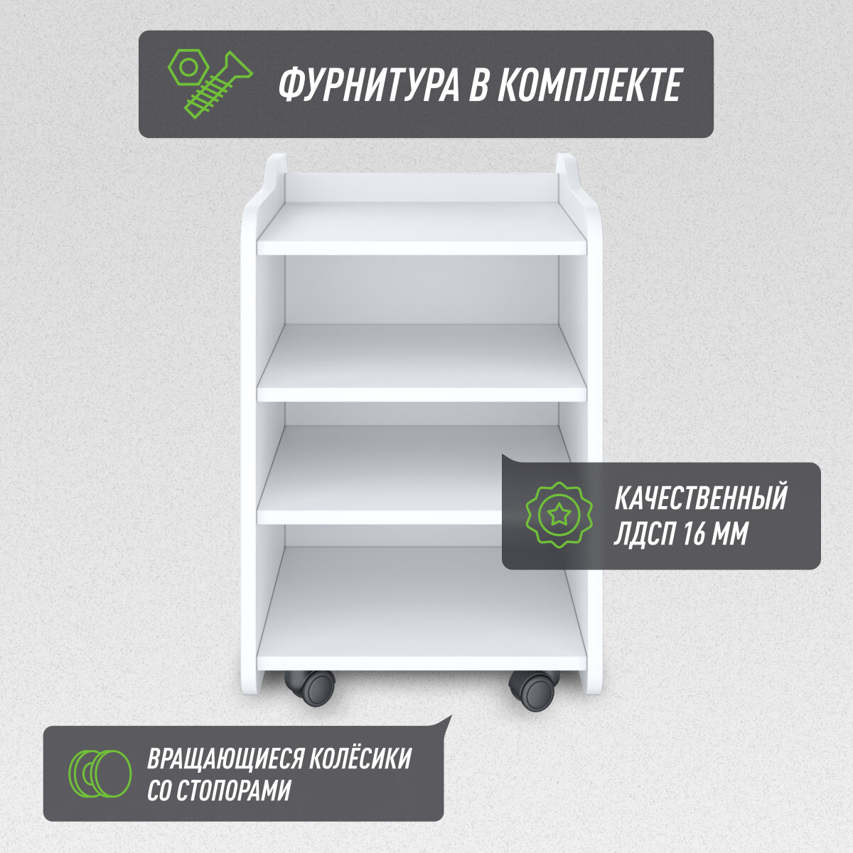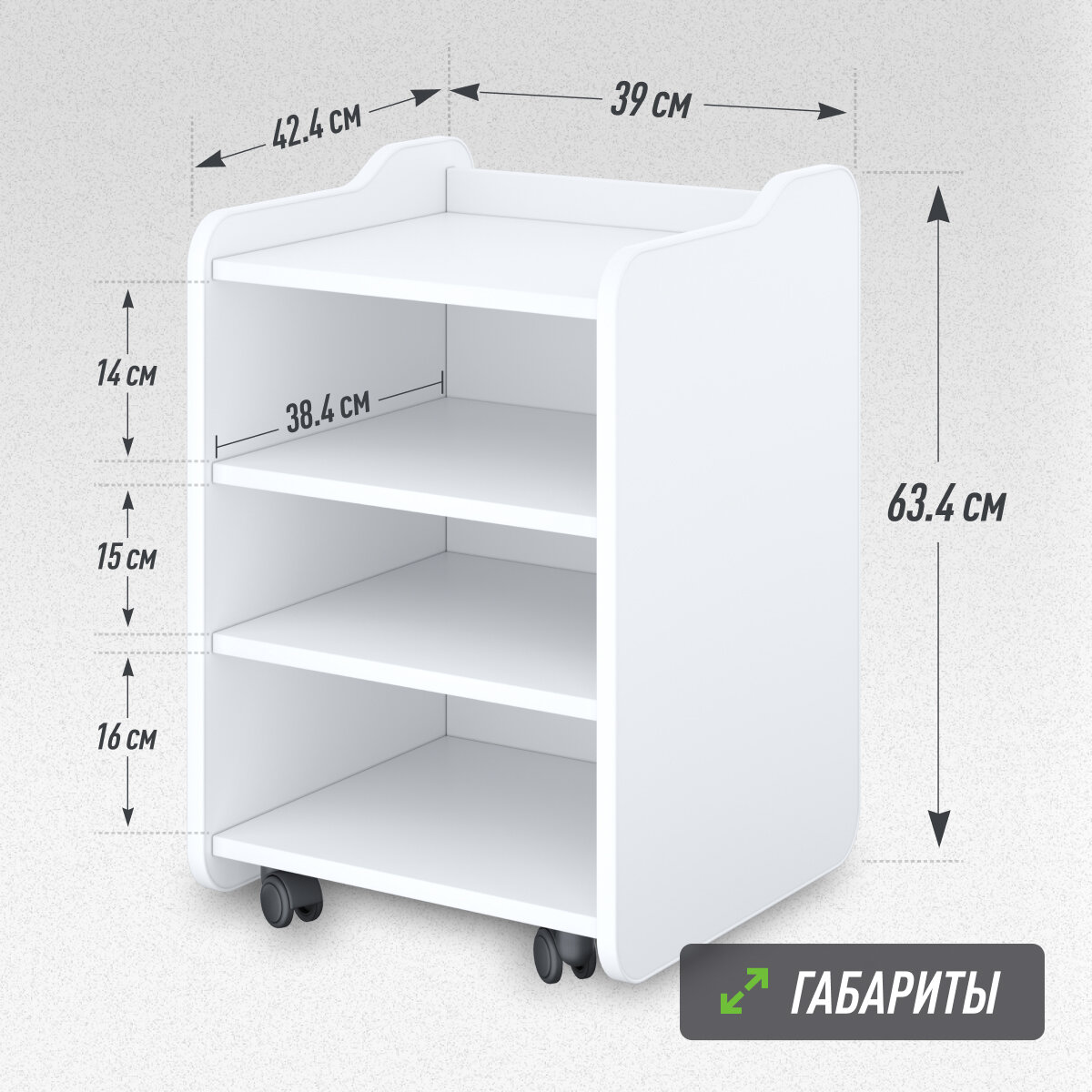 Тумба для хранения CASE Lite с открытыми полками от российского производителя мебели для геймеров VMMGAME. Тумба на колёсах подойдёт для любой комнаты или помещения: можете использовать тумбу как прикроватную – на верхней полке удобно расположится ночник и необходимые мелочи; или используйте тумбу как компьютерную – благодаря комфортным габаритам она легко поместится под столом или рядом с ним; закажите тумбу в офис, и она отлично подойдет для хранения документов и установки на ней принтера или системного блока. Тумба оборудована двумя полками, которые создают три ниши для хранения вещей. Полки можно отрегулировать на комфортную высоту, в зависимости от ваших потребностей. Бортики по краям верхней полки предотвратят падение вещей. Скругленные углы защитят вас от травм, а стены – от повреждений. Четыре колеса, вращающиеся на 360 градусов, позволят при необходимости легко переместить тумбу, а стопоры на передних колёсах – зафиксировать её положение. Благодаря дизайну, тумба становится универсальной: подойдёт для интерьера в скандинавском стиле или для более консервативного. Тумба CASE Lite производится в трёх цветах основания - чёрный, белый и серебристый, а также в двух размерах – 40 см или 50 см. Гарантия на изделие – 12 месяцев. Страна изготовления – Россия. Материал – ЛДСП 16 мм. Кромка – ПВХ. Распределяемая нагрузка – до 50 кг.