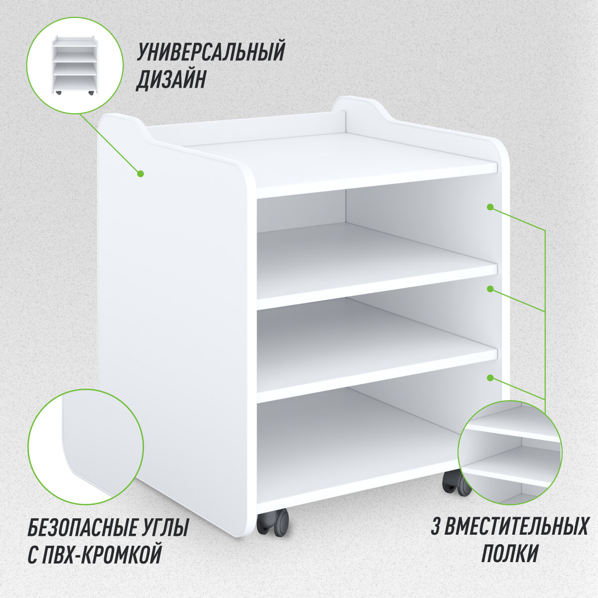 Тумба для хранения CASE Lite с открытыми полками от российского производителя мебели для геймеров VMMGAME. Тумба на колёсах подойдёт для любой комнаты или помещения: можете использовать тумбу как прикроватную – на верхней полке удобно расположится ночник и необходимые мелочи; или используйте тумбу как компьютерную – благодаря комфортным габаритам она легко поместится под столом или рядом с ним; закажите тумбу в офис, и она отлично подойдет для хранения документов и установки на ней принтера или системного блока. Тумба оборудована двумя полками, которые создают три ниши для хранения вещей. Полки можно отрегулировать на комфортную высоту, в зависимости от ваших потребностей. Бортики по краям верхней полки предотвратят падение вещей. Скругленные углы защитят вас от травм, а стены – от повреждений. Четыре колеса, вращающиеся на 360 градусов, позволят при необходимости легко переместить тумбу, а стопоры на передних колёсах – зафиксировать её положение. Благодаря дизайну, тумба становится универсальной: подойдёт для интерьера в скандинавском стиле или для более консервативного. Тумба CASE Lite производится в трёх цветах основания - чёрный, белый и серебристый, а также в двух размерах – 40 см или 50 см. Гарантия на изделие – 12 месяцев. Страна изготовления – Россия. Материал – ЛДСП 16 мм. Кромка – ПВХ. Распределяемая нагрузка – до 50 кг.