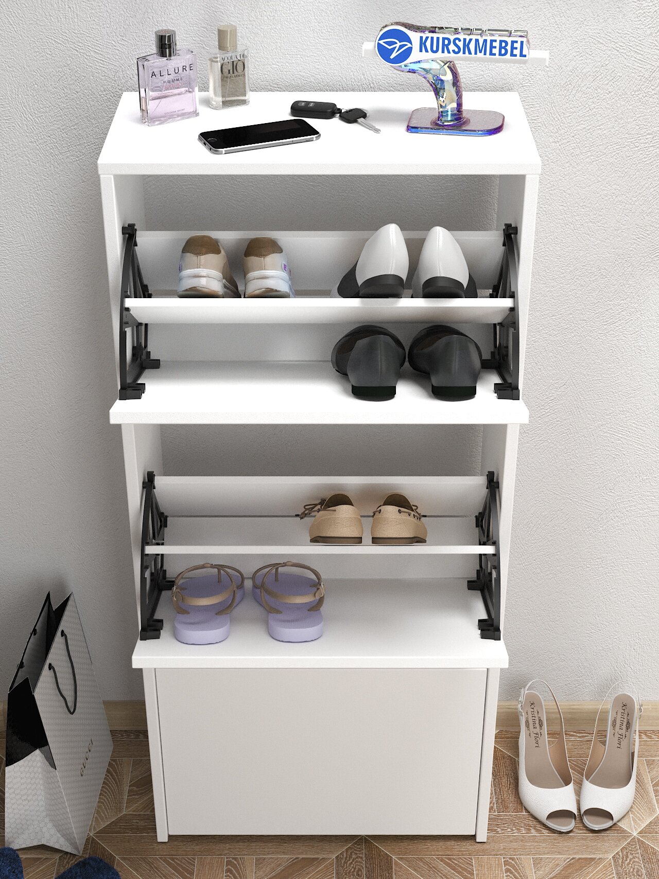 Тумба для обуви Курскмебель №15, ЛДСП, напольная, 3 отделения, белая, 51,3х25,3х110,7 см: сравнение цен, характеристики, фото, актуальное наличие и цены.