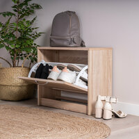 Несколько тумб можно разместить в ряд, создавая стильное и практичное горизонтальное решение для хранения обуви. Это отличный вариант для больших семей или любителей обуви. Тумба отличается компактными размерами, что делает ее идеальной для небольших пространств. При этом она легко вписывается в различные стили интерьера — от современного до классического.