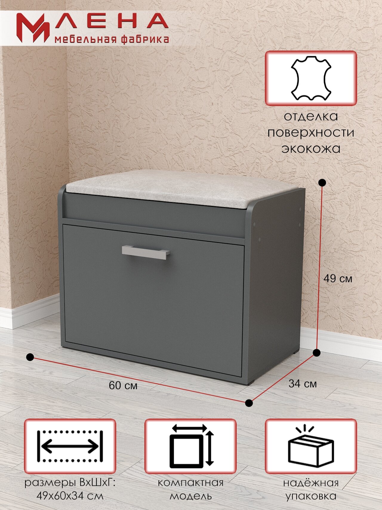 Тумба для обуви Мебельная фабрика ЛЕНА №8, ЛДСП, антрацит, 60 см х 34,3 см х 49 см: сравнение цен, характеристики, фото, актуальное наличие и цены.