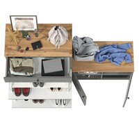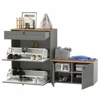 - Тумба с выдвижным ящиком для мелочей сверху и двумя откидными дверками с полками для 12 пар обуви снизу.