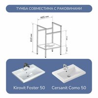 Тумба оснащена открытой полкой, которая обеспечивает удобное размещение и хранение различных предметов под умывальником.