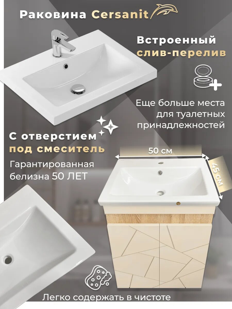 Тумба для ванной АКВАМИКС КЛЭО напольная, с раковиной Cersanit, бежевый матовый, 50х43х80 см: сравнение цен, характеристики, фото, актуальное наличие и цены.