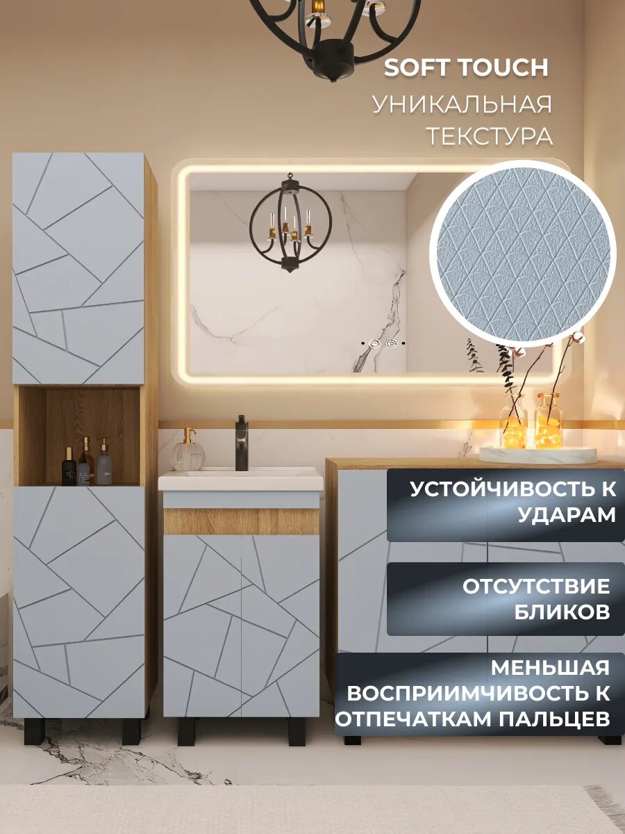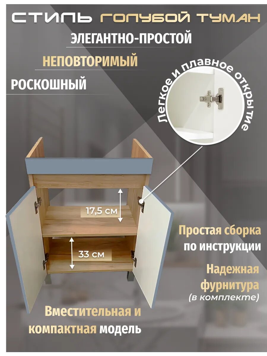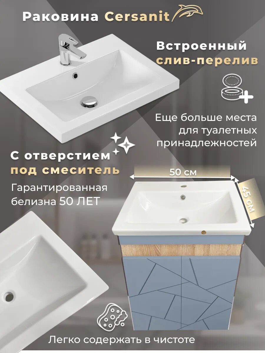 Тумба для ванной АКВАМИКС КЛЭО напольная, с раковиной Cersanit, голубой матовый, 50х43х80 см: сравнение цен, характеристики, фото, актуальное наличие и цены.