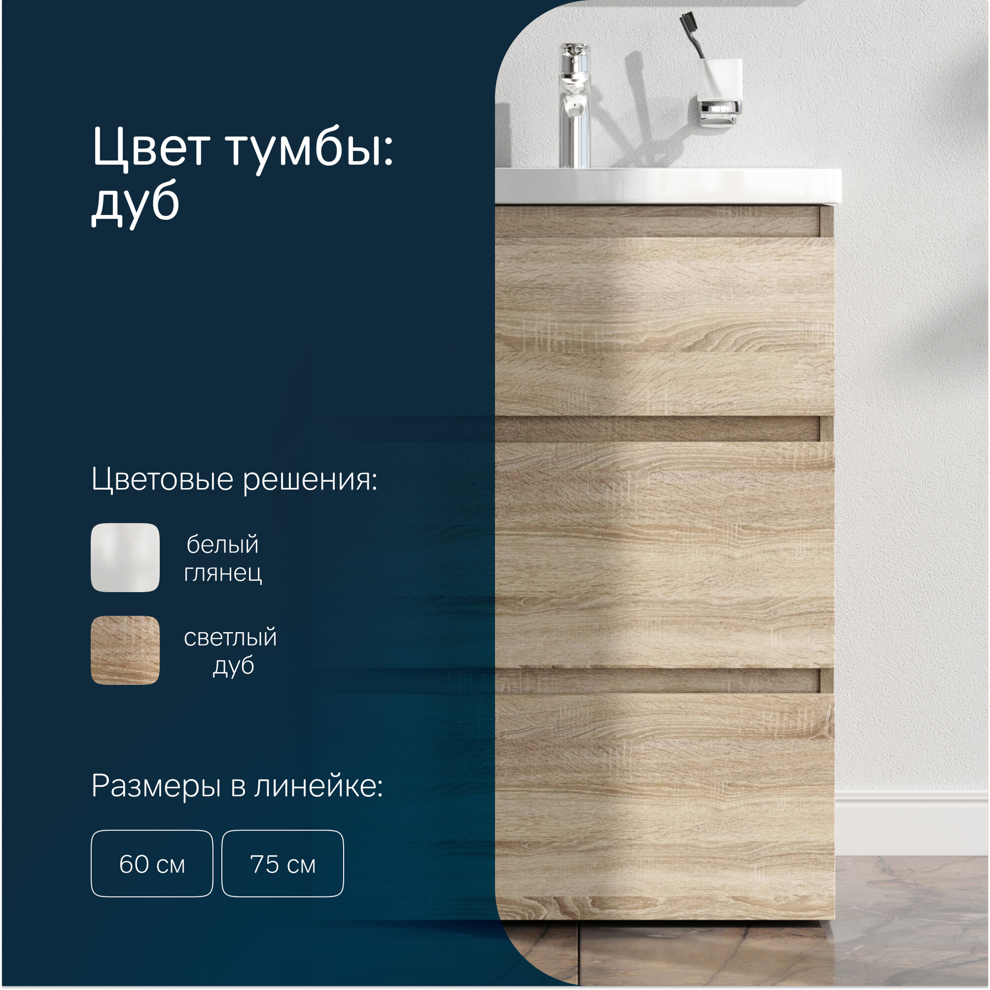 Тумба под раковину AM.PM GEM S напольная, 60 см, 3 ящика, светлый дуб: сравнение цен, характеристики, фото, актуальное наличие и цены.