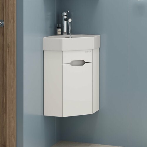 Навесная угловая тумба под раковину для ванной комнаты Onika Айленд 35 сочетает в себе стильный минималистичный дизайн, белую глянцевую поверхность и высочайшее качество исполнения.