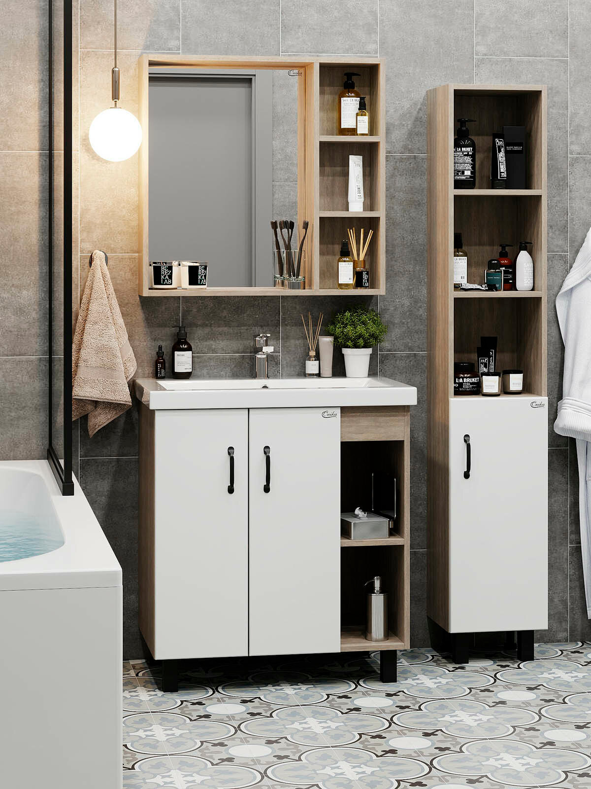 Тумба под раковину в ванную Onika Тимбер 70 напольная, белая мат./дуб сонома (ум. Фостер 70): сравнение цен, характеристики, фото, актуальное наличие и цены.