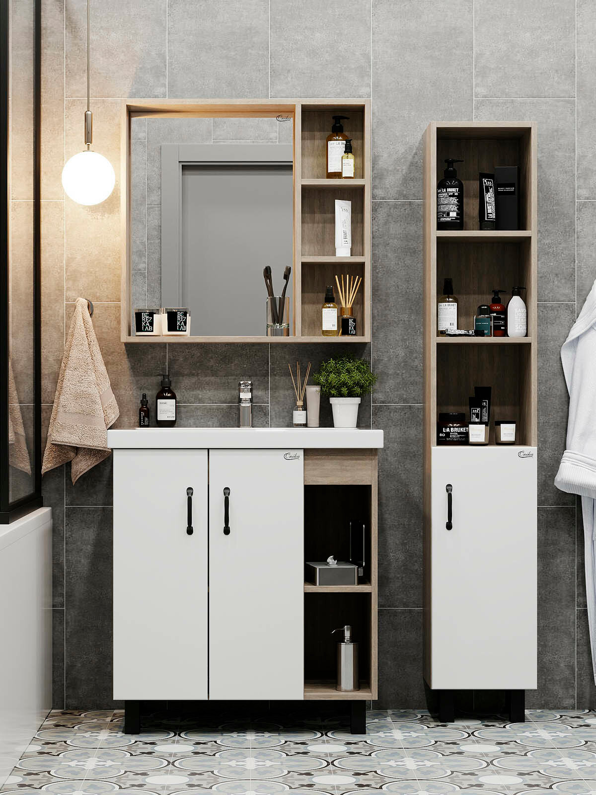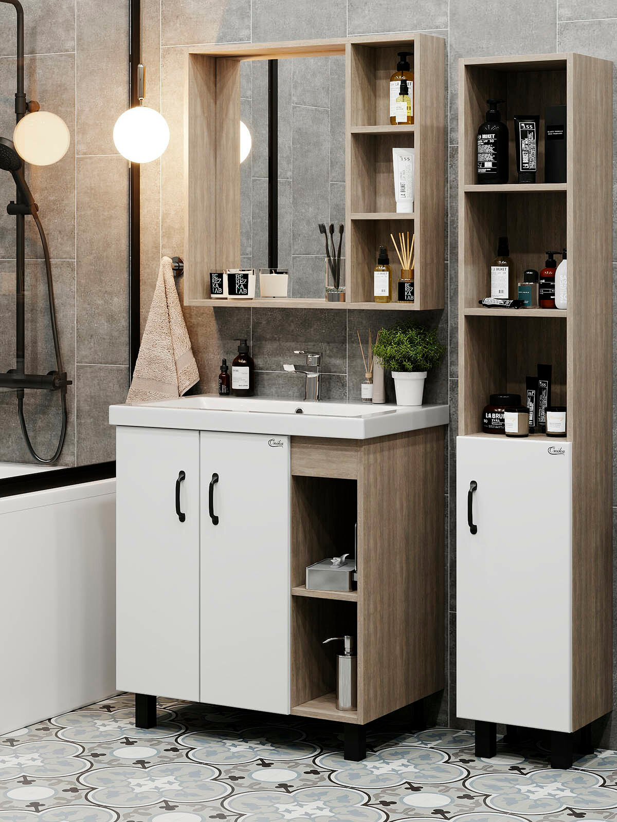 Купить Тумба под раковину в ванную Onika Тимбер 70 напольная, белая мат./дуб сонома (ум. Фостер 70) с доставкой по всей России.