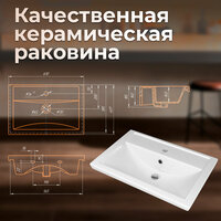 Тумба комплектуется раковиной Kirovit Фостер 60 из керамики, что обеспечивает надежность и долговечность изделия. Фурнитура выполнена в черном цвете, что придает изделию современный и стильный вид.