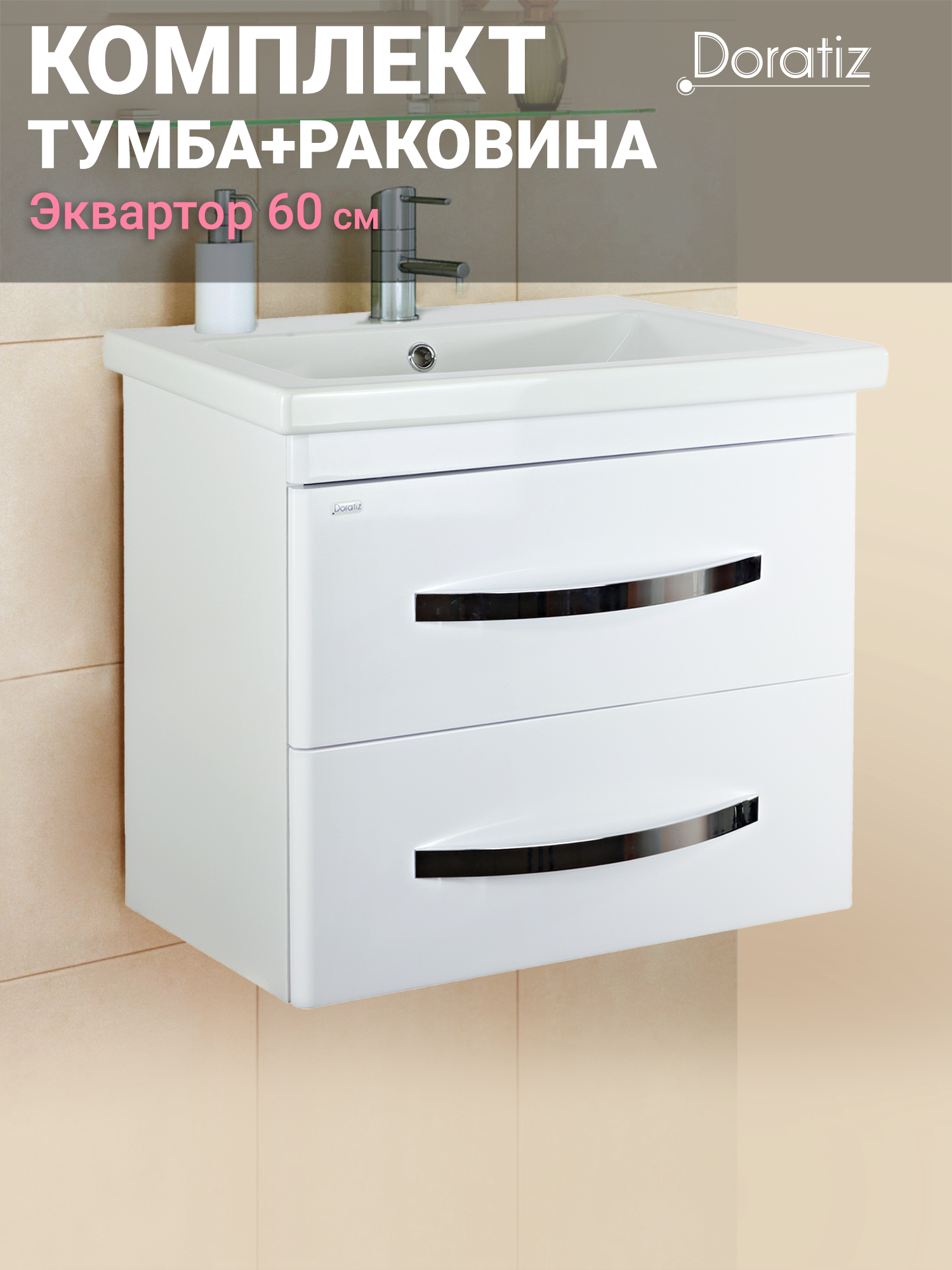 Купить Тумба для ванны Экватор 60 подвесная, цвет белый, с двумя ящиками, с раковиной Сomo 60, DORATIZ, Арт: 8912.808 с доставкой по всей России. Тумба для ванны Экватор 60 подвесная, цвет белый, с двумя ящиками, с раковиной Сomo 60, DORATIZ, Арт: 8912.808: сравнение цен, характеристики, фото, актуальное наличие и цены.
