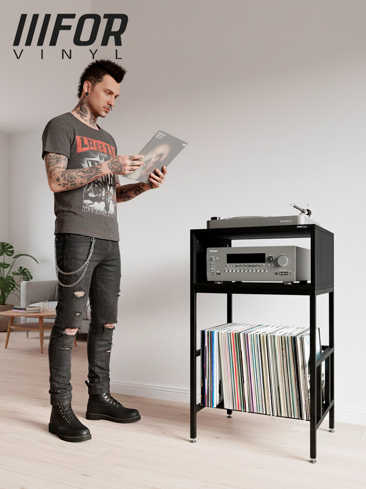 Тумба для винилового проигрывателя и виниловых пластинок вмещает до 100 пластинок