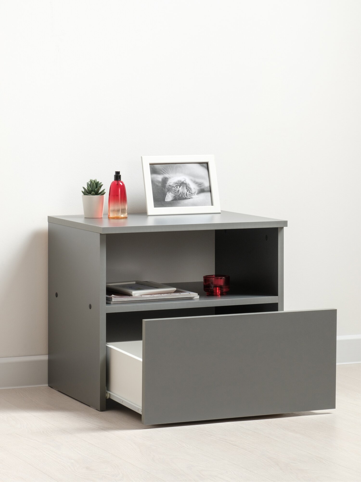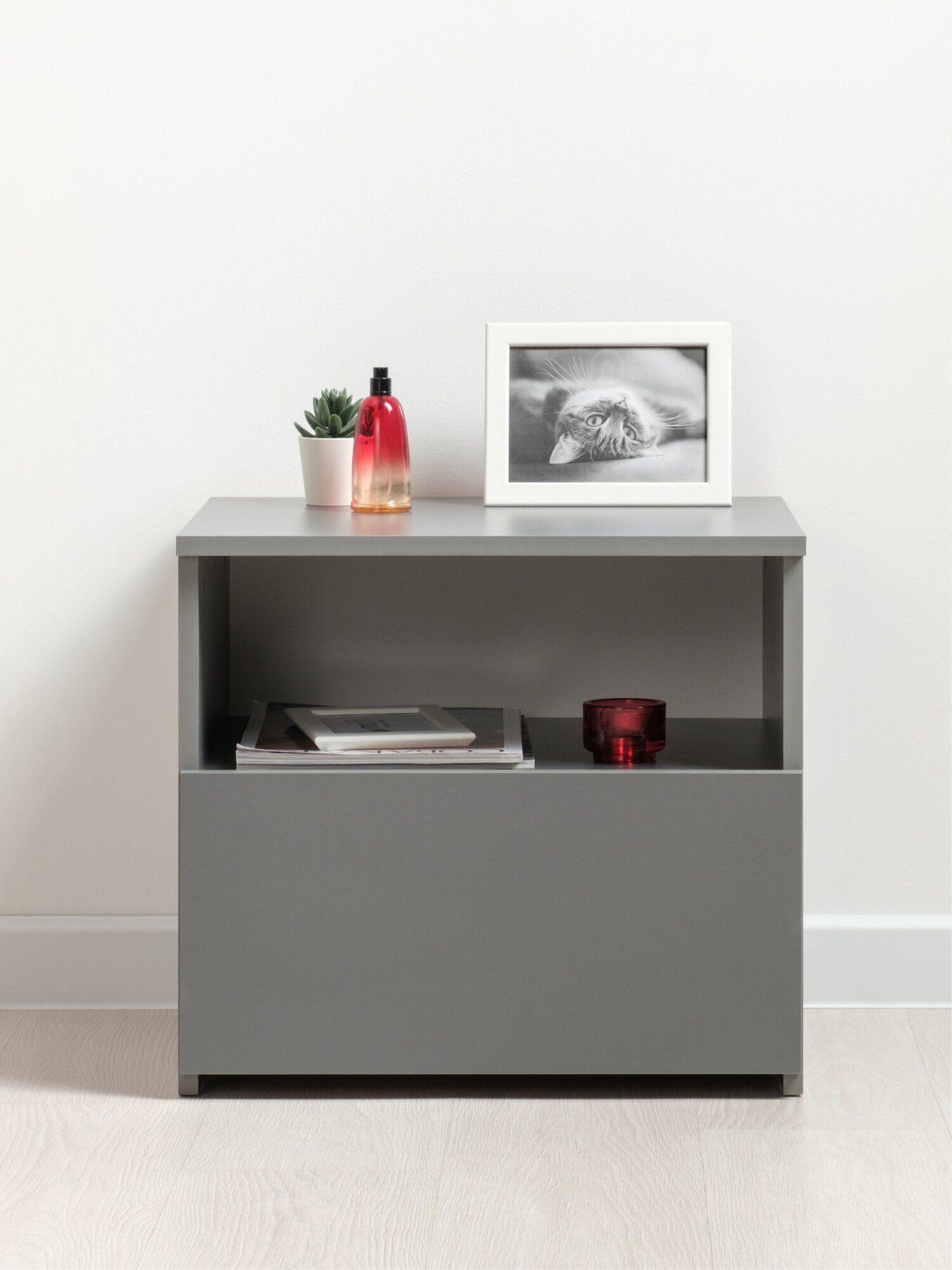 ► Тумбочка идеально подходит для спальни, разместив её рядом с кроватью, у вас появляется возможность хранить необходимые вещи на расстоянии вытянутой руки, будь то книга, мобильный телефон или светильник. Тумба с выдвижным ящиком и открытым отделением для хранения впишется в любое помещение: в спальню, в прихожую, в гостиную, в детскую и офис.