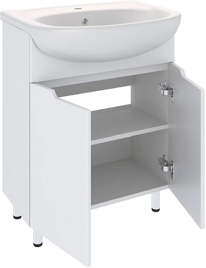 Тумба напольная EMMY Агата 55 с раковиной Rosa Уют 55, напольная, белая, без ручек, для ванной комнаты