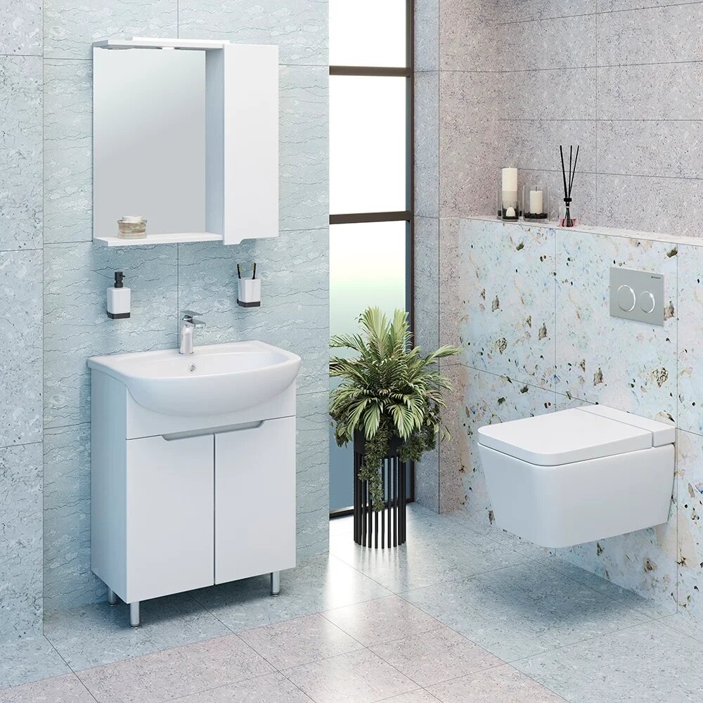 Тумба с раковиной EvaGold 60 см, набор LP20.14 белый глянец для ванной