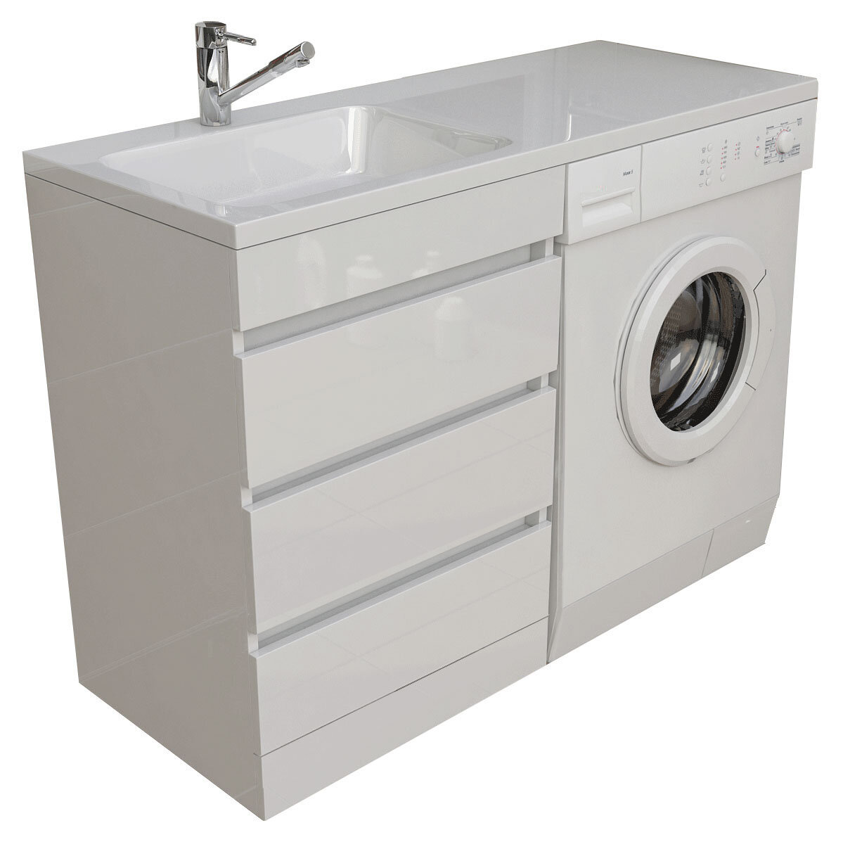 Купить Тумба Emmy «Джерси 60» Левая напольная, белая, 3 ящика, с умывальником Аванти 1200 над стиральной машиной с доставкой по всей России.