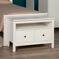 Тумба оснащена двумя просторными ящиками, которые идеально подходят для хранения самых разных вещей: аксессуаров, важных мелочей, дисков или даже постельного белья. Ящики оборудованы современными направляющими полного выдвижения с доводчиками, которые обеспечивают плавное, бесшумное и легкое открывание, добавляя комфорта в повседневное использование.