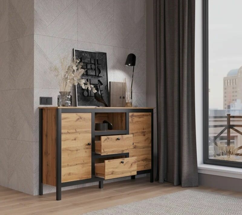Тумба-комод БРВ-Мебель Loft KOM2D2S/150, 98.5 x 38.5 x 150 см, цвет: дуб вотан: сравнение цен, характеристики, фото, актуальное наличие и цены.