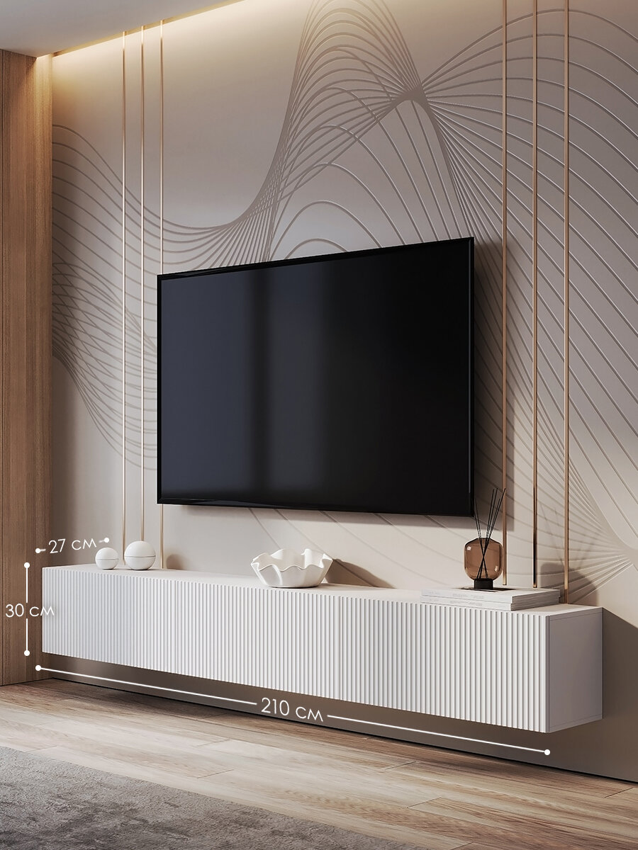 Тумба комод под телевизор Puzzlemebel Камелия, подвесная настенная консоль, 210 см, белый