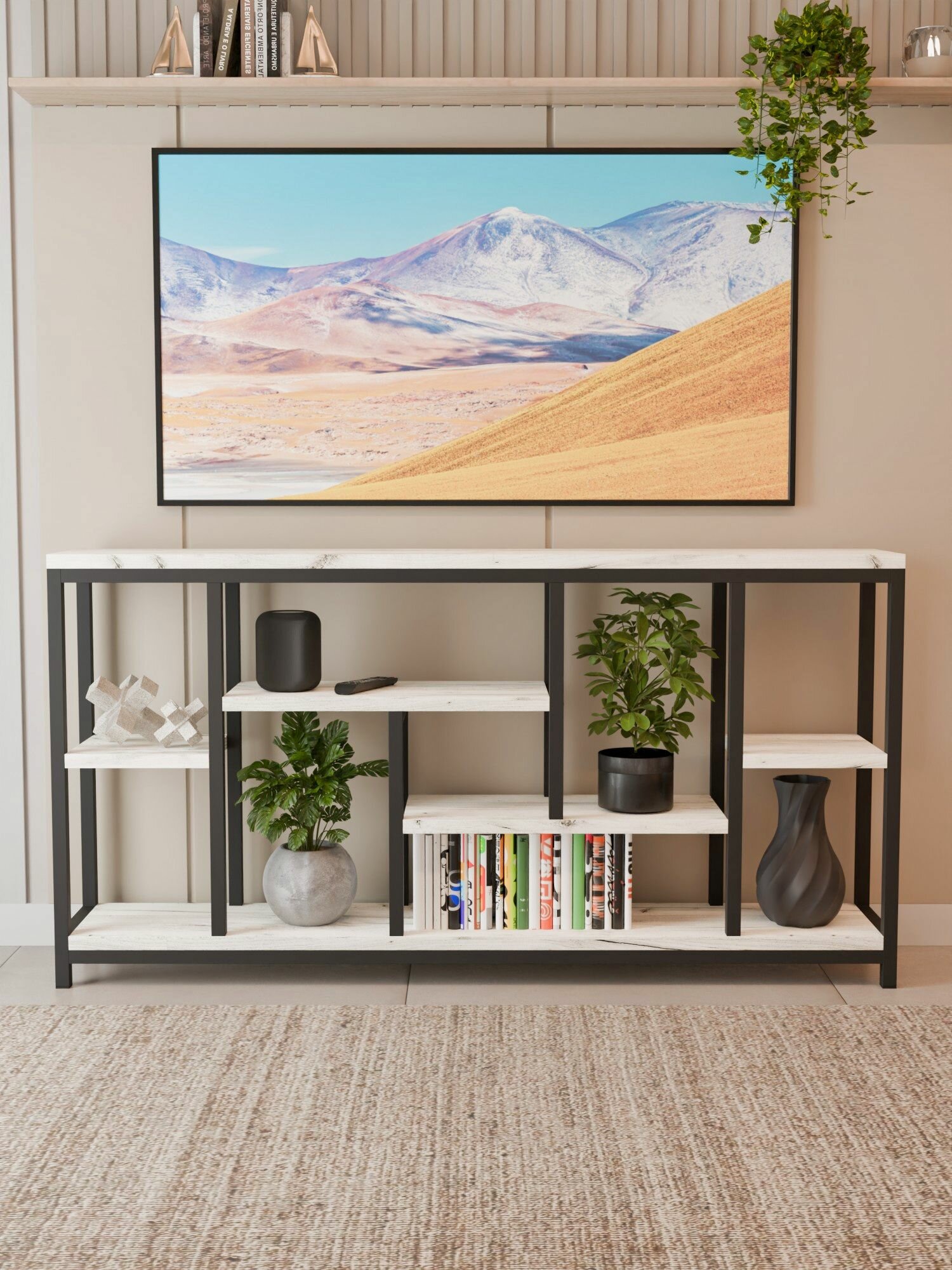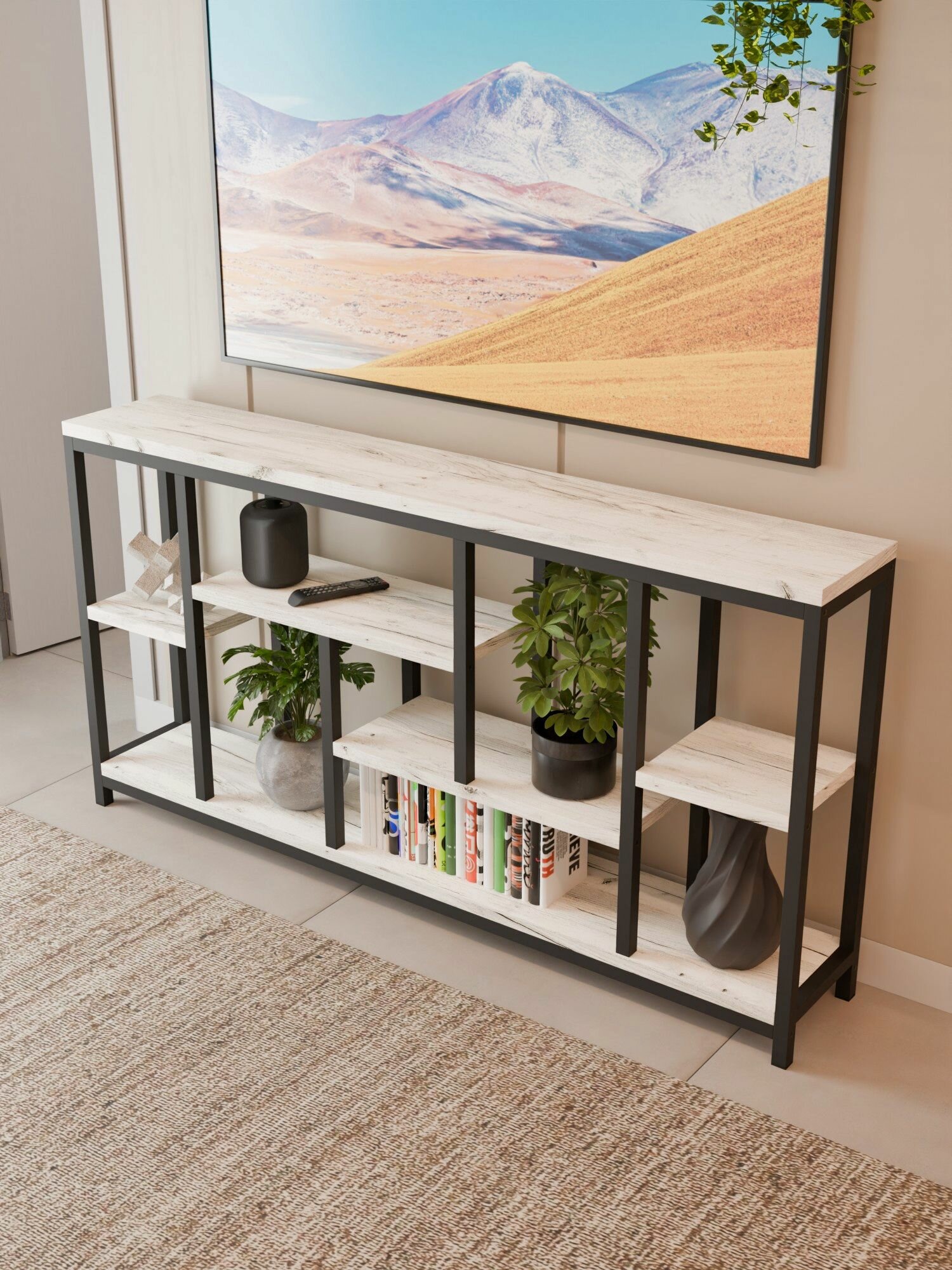Металлический каркас (профильная труба 20х20) обеспечивает надежность и долговечность. Полки из ЛДСП обладают повышенной устойчивостью к механическим воздействиям: нагрузкам и царапинам.