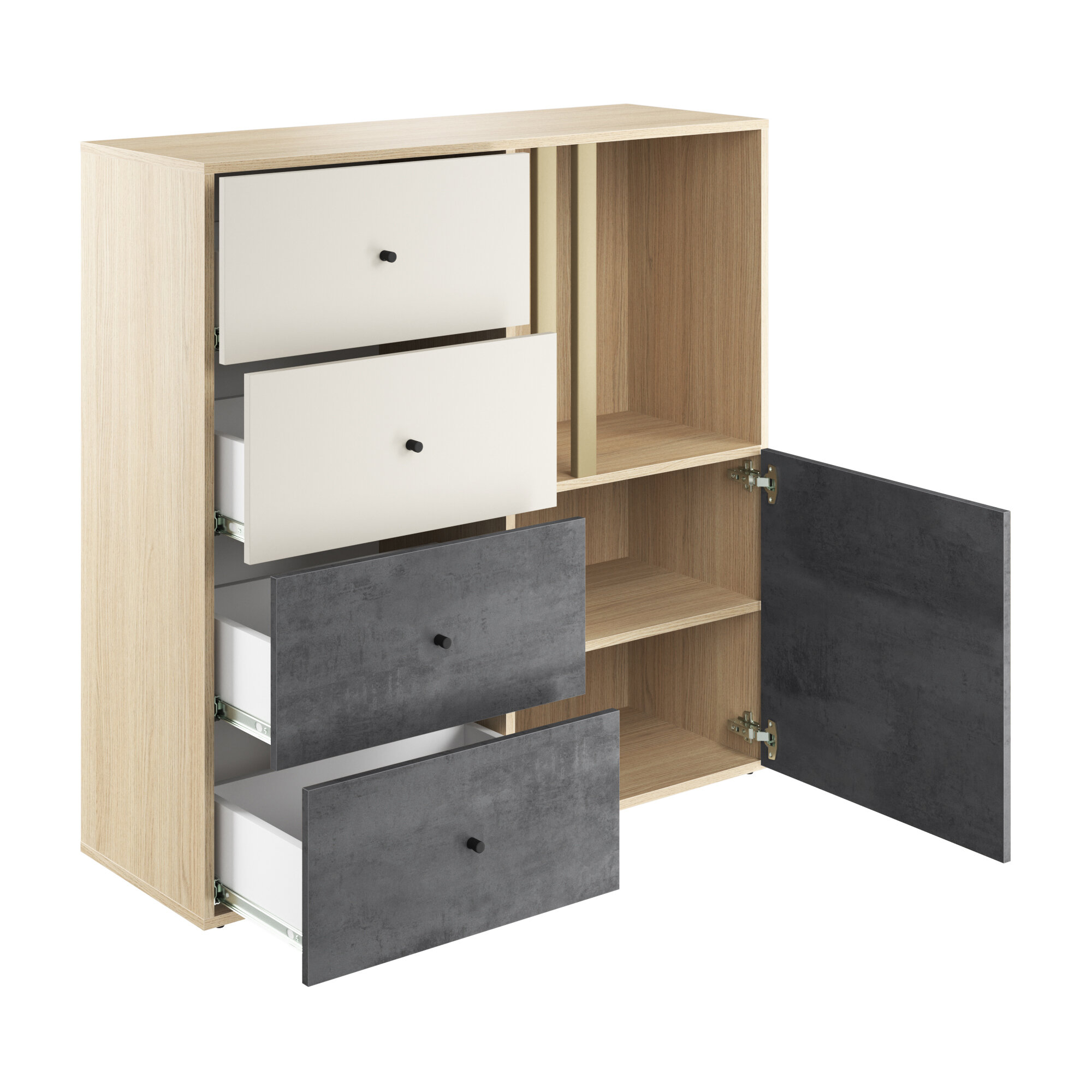 Вместительность. Благодаря своей конструкции тумба дает возможность разместить большое количество вещей. Четыре ящика и распашной фасад. Выдвижные ящики и полка позволят бережно хранить предметы одежды и личные вещи. Направляющие и петли с доводчиками. Направляющие полного выдвижения обеспечивают лёгкое открытие и закрытие фасадов. Надёжная фурнитура. Фурнитура с бессрочной гарантией от «Лазурит».