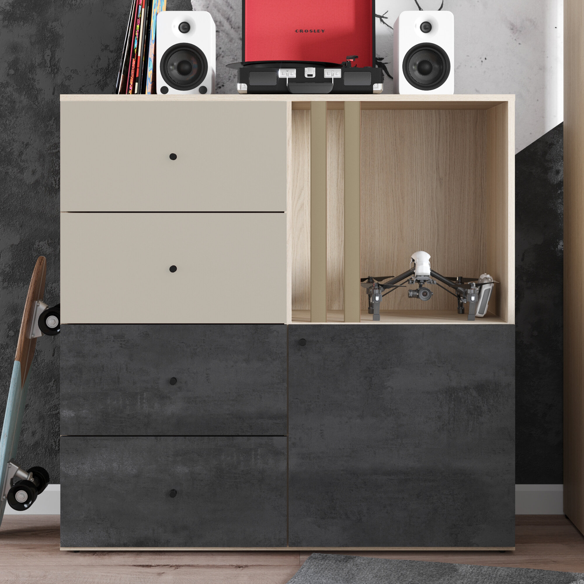 Тумба «Джелато» не смотря на свои компактные размеры вместительная и практичная. Органично впишется в детскую комнату и станет украшением интерьера. Металлическая вставка на открытой полке, глубокие матовые оттенки серого и бежевого, древесная фактура корпуса дополняют друг друга. Коллекция «Джелато» удачно сочетает в себе стиль и комфорт.