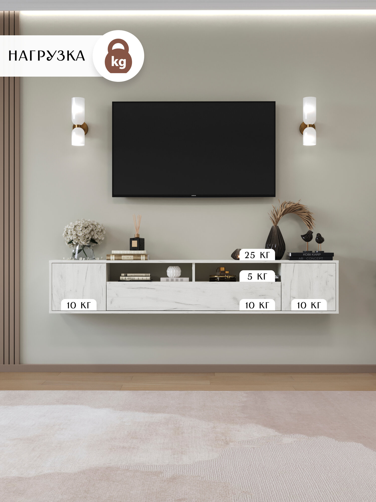 Тумба Letta Шале для ТВ, подвесная/напольная, современная, дуб крафт белый, 180×35,5×25,4 см: сравнение цен, характеристики, фото, актуальное наличие и цены.