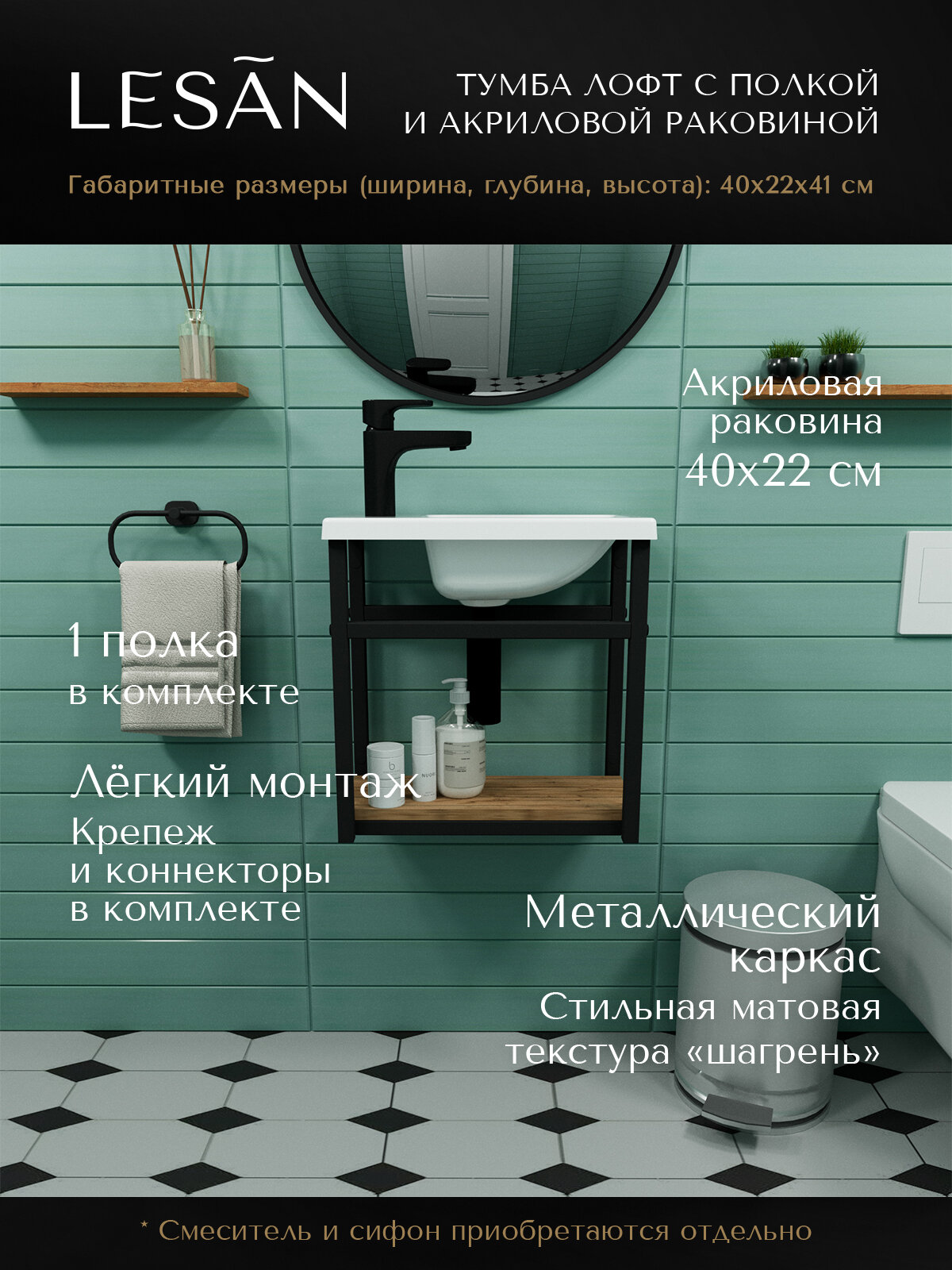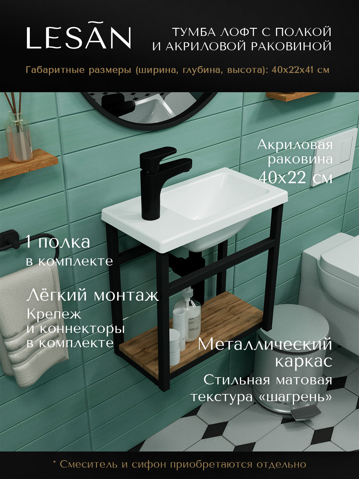 Тумба лофт подвесная с акриловой раковиной 40 для ванной комнаты LESAN: сравнение цен, характеристики, фото, актуальное наличие и цены.