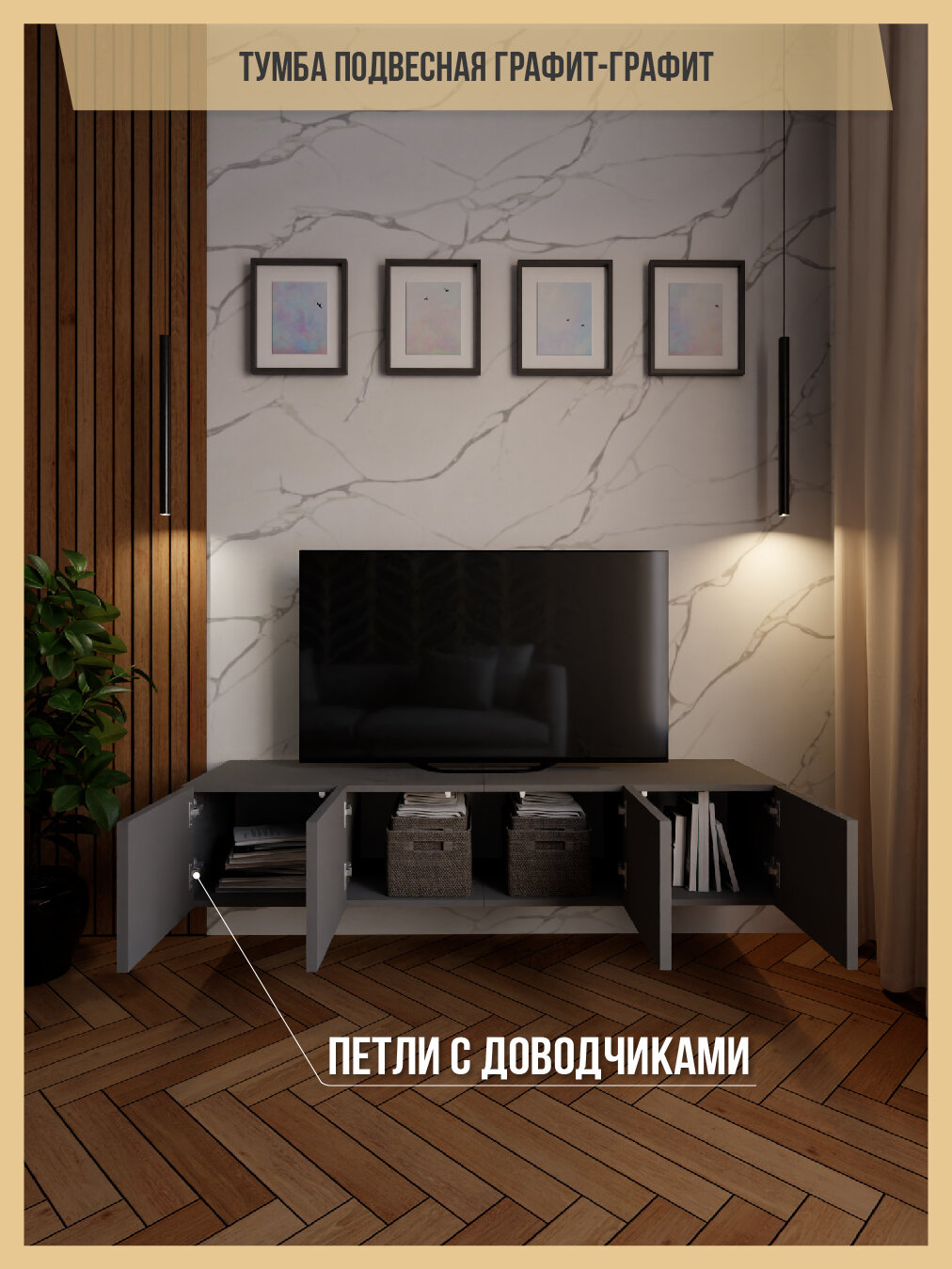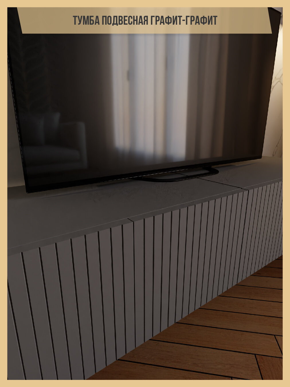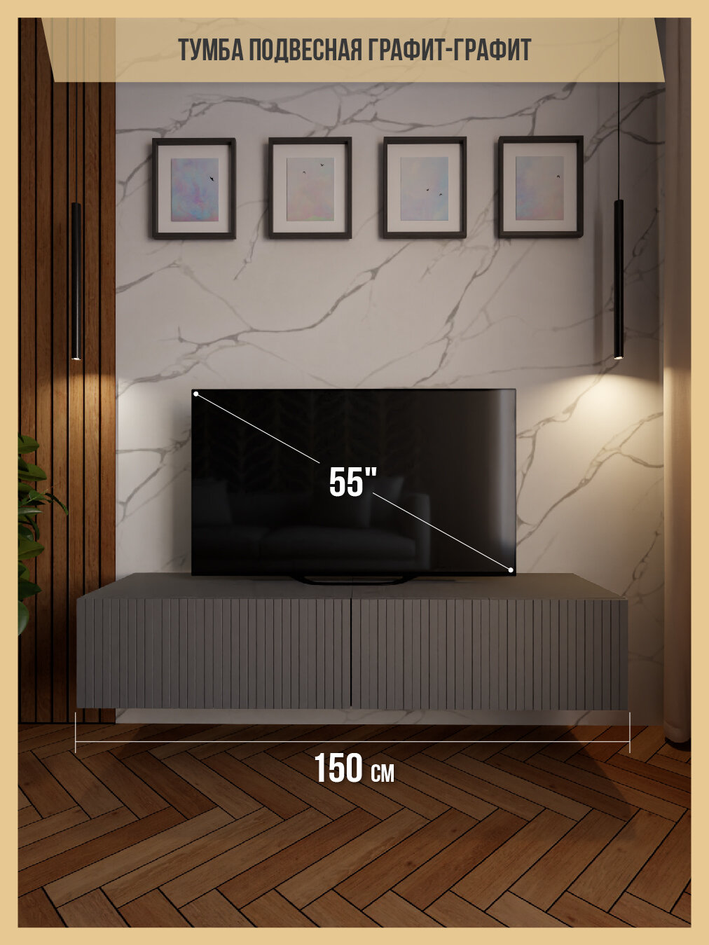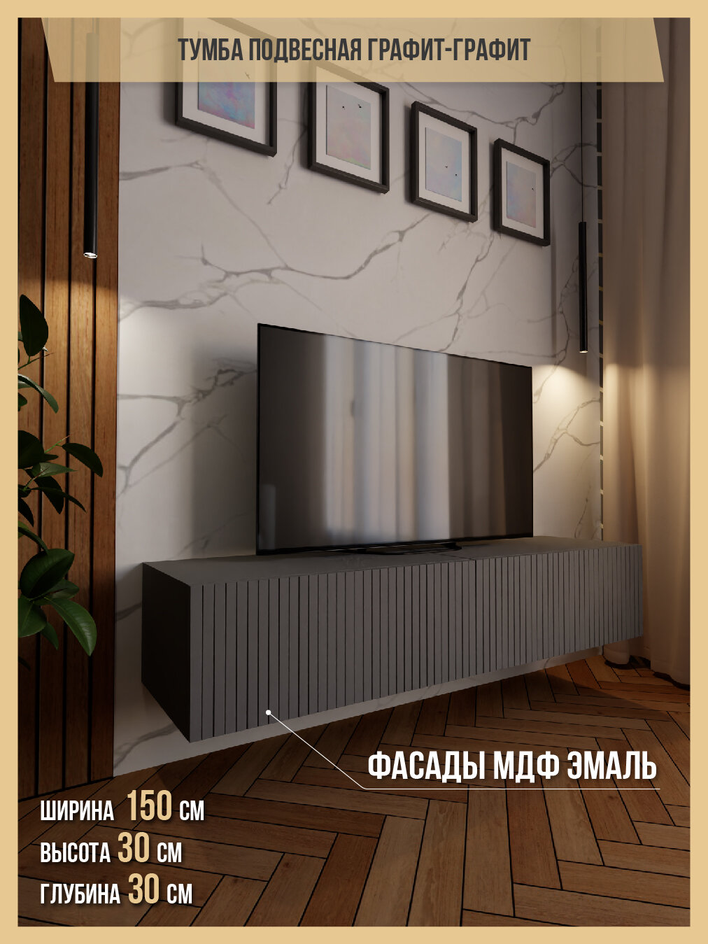 Тумба Milkstone «Графит», подвесная, для ТВ, 150х30х30 см, серая, без ящиков,: сравнение цен, характеристики, фото, актуальное наличие и цены.