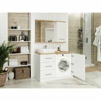 Купить Респект -120 Тумба с 3 ящ. под стиральную машину левая (белая ПВХ/Дуб Тиссано) / раковина с доставкой по всей России.