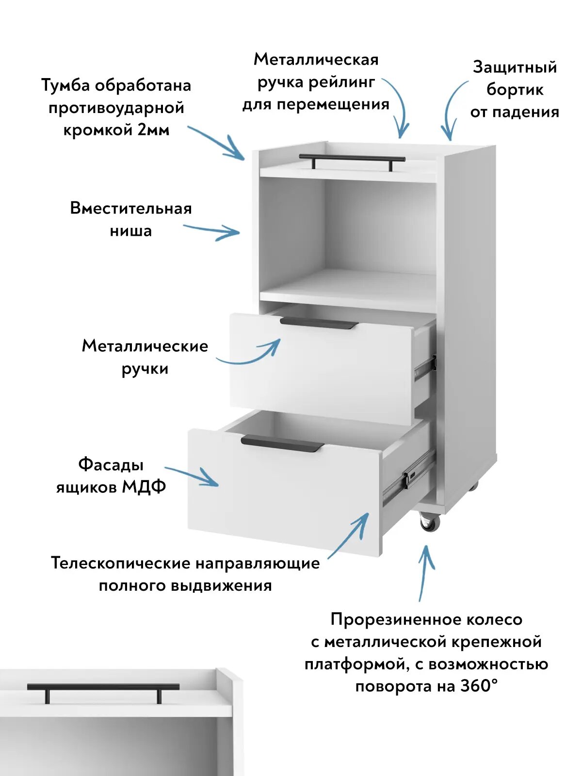 Тумба мобильная Compass К-30, 40.4х72х35, с двумя ящиками, белый структурный/меренга: сравнение цен, характеристики, фото, актуальное наличие и цены.