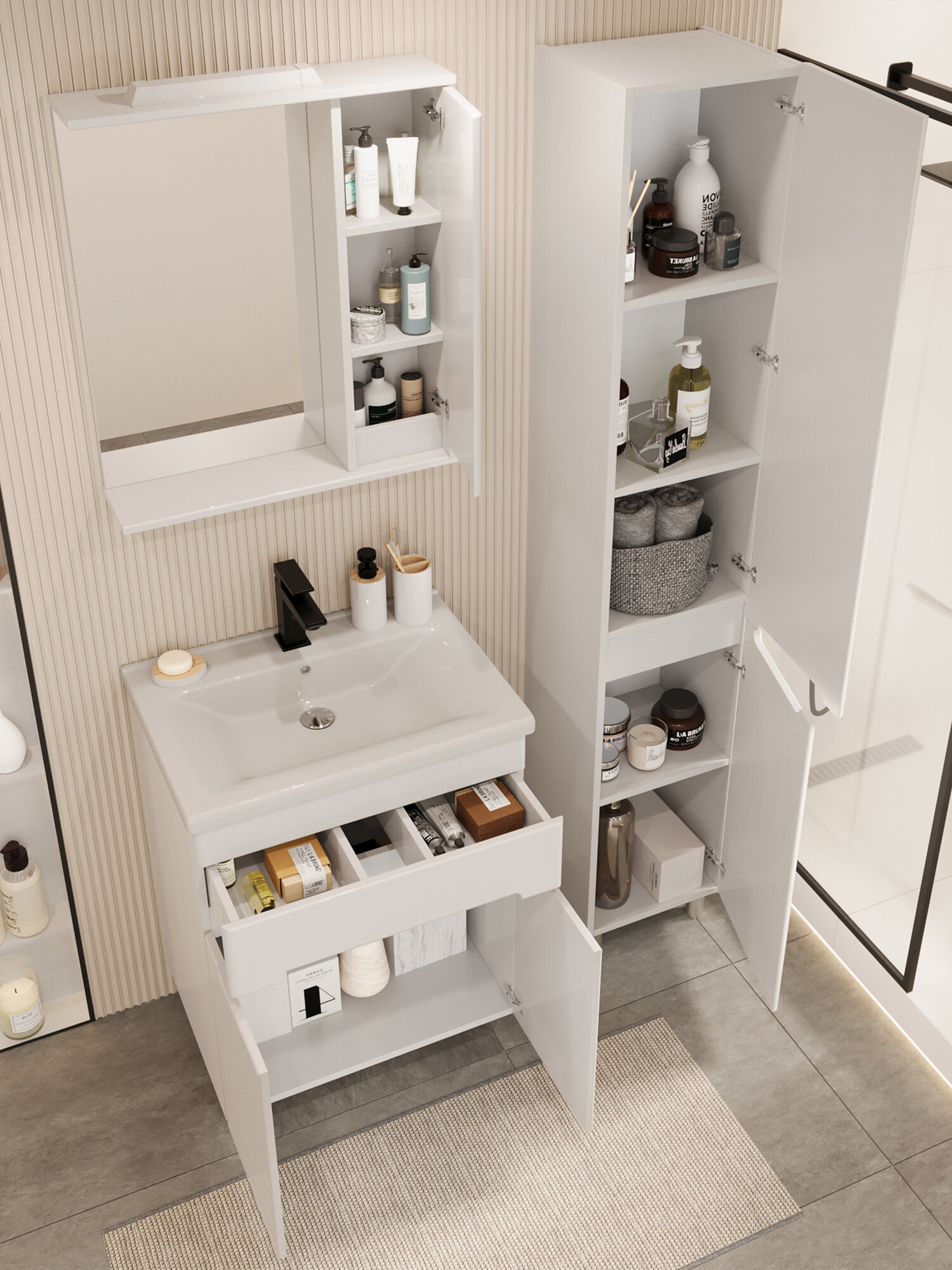 Тумба с раковиной EvaGold 60 см, набор LP20.14 белый глянец для ванной