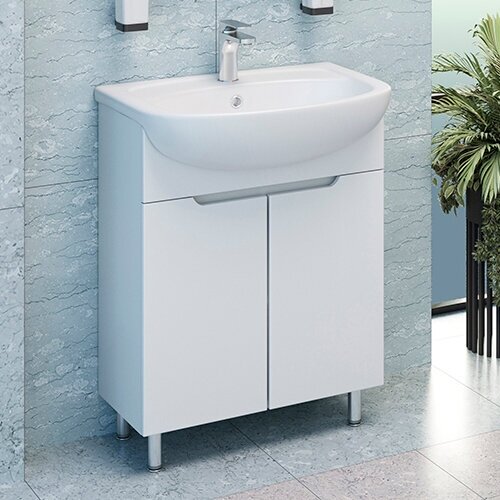 Купить Тумба напольная EMMY Агата 55 с раковиной Rosa Уют 55, напольная, белая, без ручек, для ванной комнаты с доставкой по всей России.