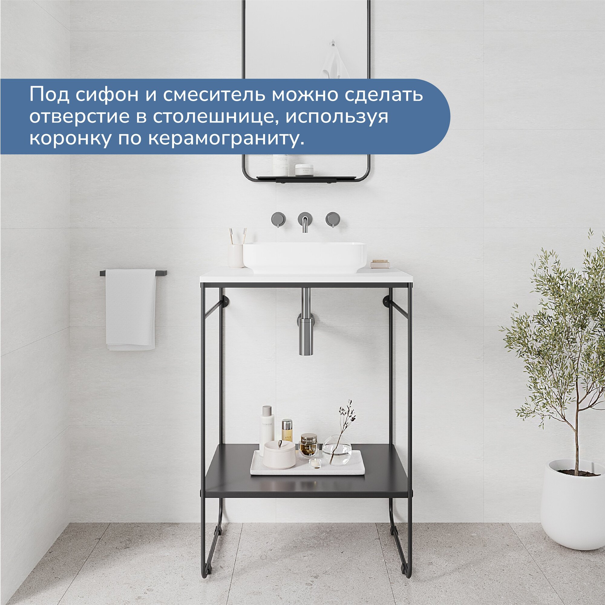 Купить Тумба напольная под раковину 60 см. Ulitka Bruno, со столешницей, металл, цвет черный с доставкой по всей России.