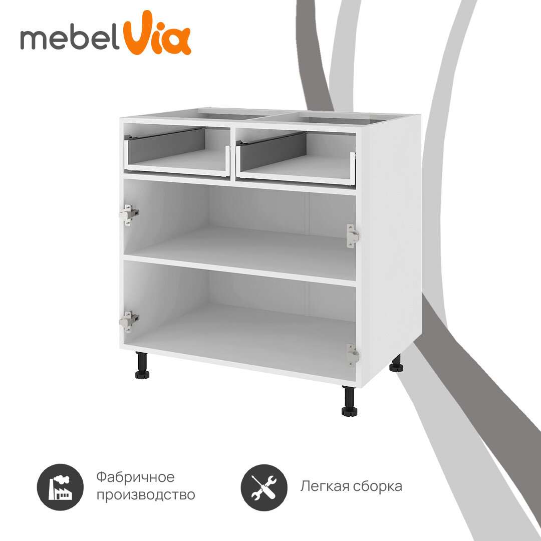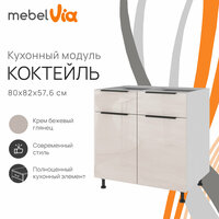 Кухонный модуль напольный с ящиками 82х80 Коктейль, фасад крем бежевый глянец, корпус ЛДСП белый, MebelVia: сравнение цен, характеристики, фото, актуальное наличие и цены.