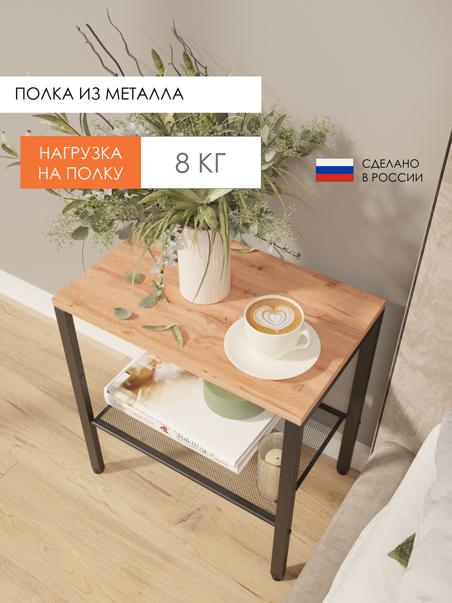 Она отличается высоким качеством исполнения и современным дизайном в стиле лофт. Напольная конструкция предназначена для прикроватного размещения, обеспечивая удобный доступ к необходимым предметам во время сна.