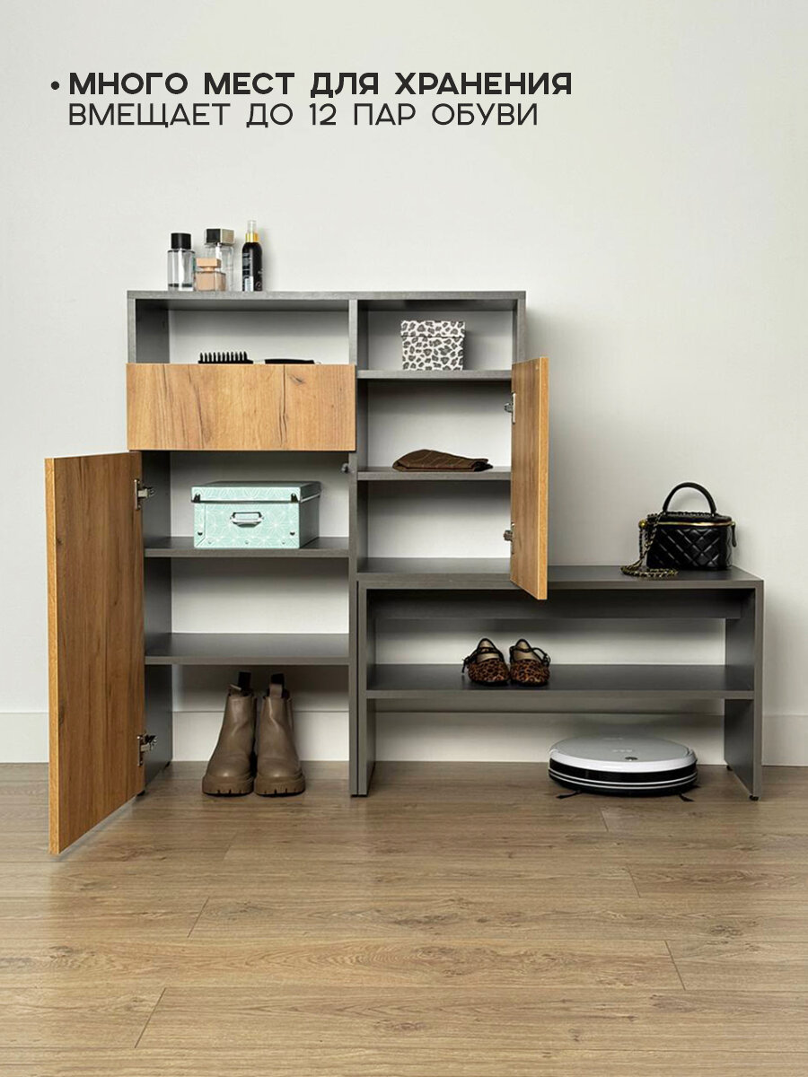 Тумба — обувница напольная с полками «Либерти», ЛДСП Графит/дуб крафт золотой, 125*35*102 см, MEBELSON: сравнение цен, характеристики, фото, актуальное наличие и цены.